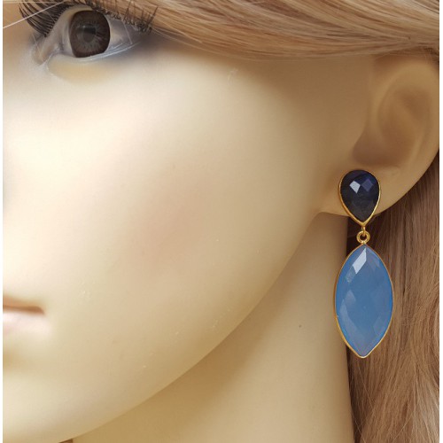 Mooie Vergulde (over Sterling zilver) oorbellen gezet met marquise blauw Chalcedoon en Labradoriet.