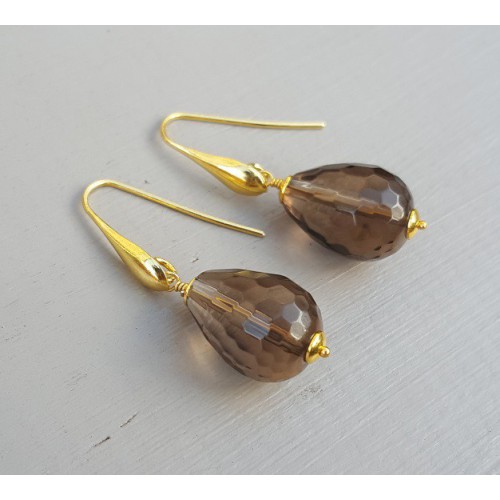 Mooie Vergulde (over Sterling zilver) oorbellen met Smokey Topaas briolet.