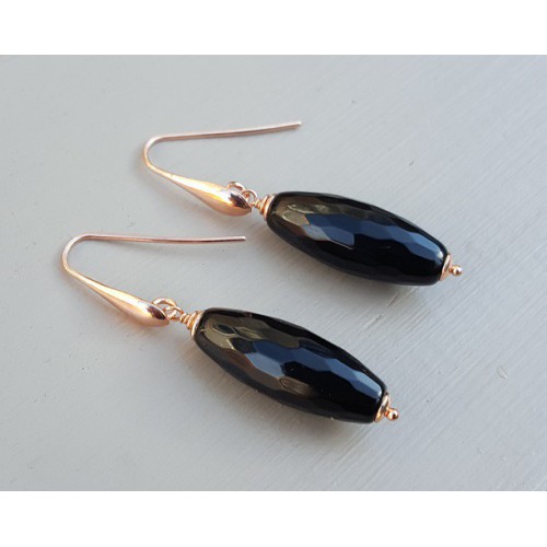 Mooie oorbellen van Sterling zilver en verguld met rosé goud met zwarte Onyx.