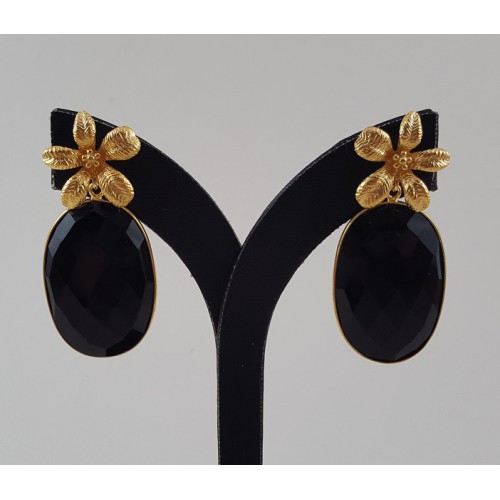 Mooie Vergulde (over Sterling zilver) oorbellen gezet met ovale facet geslepen zwarte Onyx.