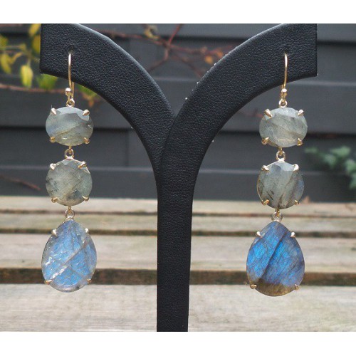 Mooie Vergulde (over Sterling zilver) oorbellen gezet met facet geslepen Labradoriet.