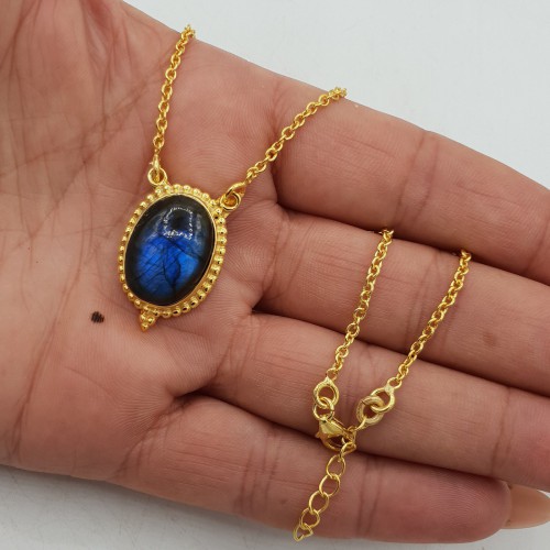 Goud vergulde (over Sterling zilver vermeil) ketting met Labradoriet hanger.