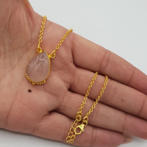 Goud vergulde (over Sterling zilver vermeil) ketting met Rozenkwarts hanger.
