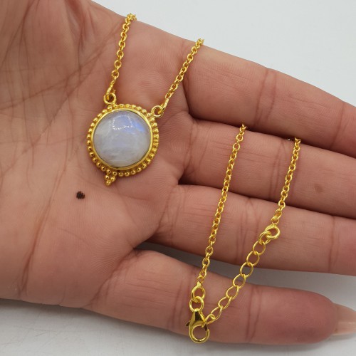 Vergulde (over Sterling zilver vermeil) ketting met regenboog Maansteen hanger.