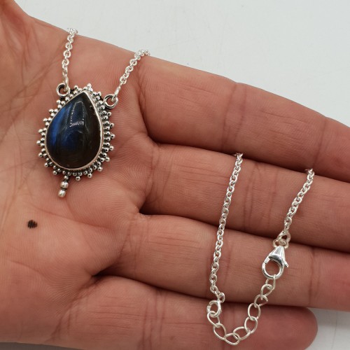 925 Sterling zilveren ketting met Labradoriet hanger.