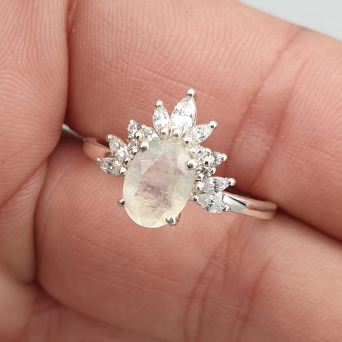 925 Sterling zilveren ring gezet met regenboog Maansteen.