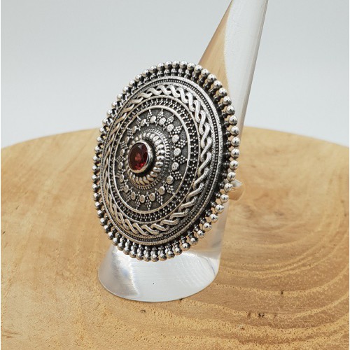 Mooie Sterling zilveren ring met grote ronde kop gezet met Granaat.