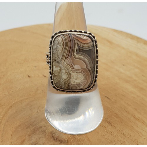 Mooie Sterling zilveren ring met Laguna Lace Agaat gezet in bewerkte setting.