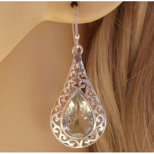 Mooie Sterling zilveren oorbellen gezet met groene Amethist.