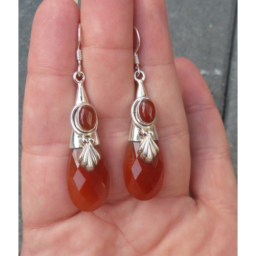 Mooie Sterling zilveren oorbellen met facet Carneool.