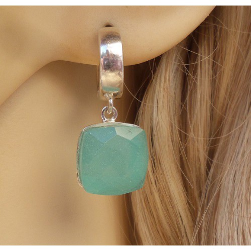 Mooie Sterling zilveren creolen gezet met aqua Chalcedoon.