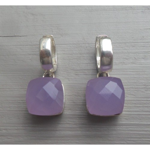 Mooie Sterling zilveren creolen gezet met lavendel Chalcedoon.