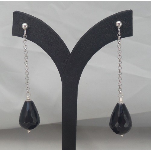 Mooie Sterling zilveren oorbellen met zwarte Onyx briolet.