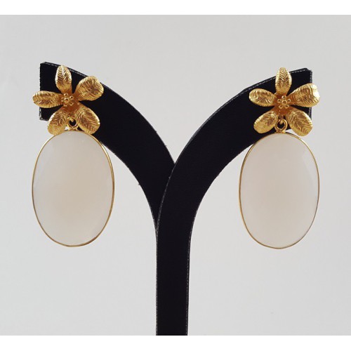 Vergulde oorbellen met ovale facet witte Chalcedoon