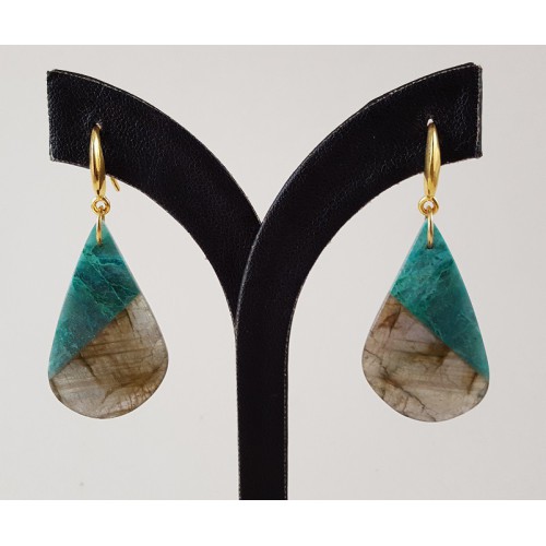 Mooie Vergulde (over Sterling zilver) oorbellen met hanger van Chrysocolla
