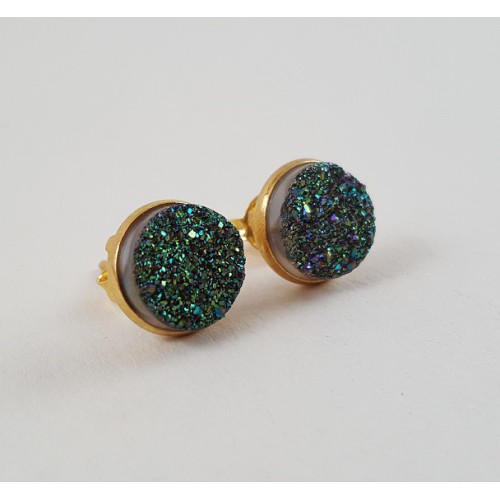 Mooie Vergulde (over Sterling zilver) oorknoppen gezet met gouden druzy Titanium.