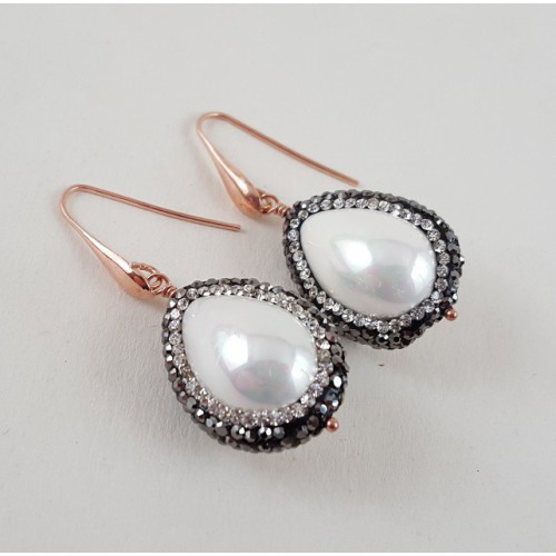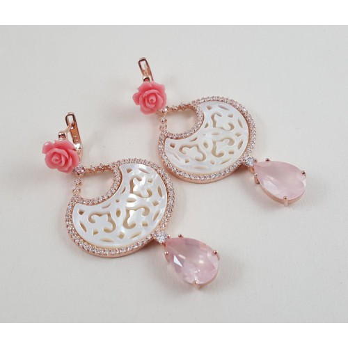 Mooie rosé vergulde (over Sterling zilver) oorbellen met Rozenkwarts, Parelmoer en Zirkonia's.
