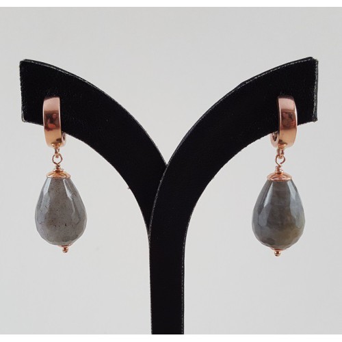 Mooie rosé vergulde (over Sterling zilver) oorbellen met Labradoriet briolet.