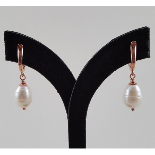 Mooie rosé vergulde (over Sterling zilver) oorbellen met zoetwater Parel.