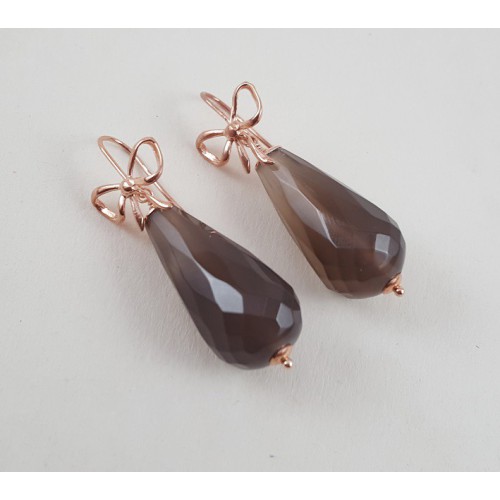 Mooie rosé vergulde (over Sterling zilver) oorbellen met Smokey Topaas briolet.
