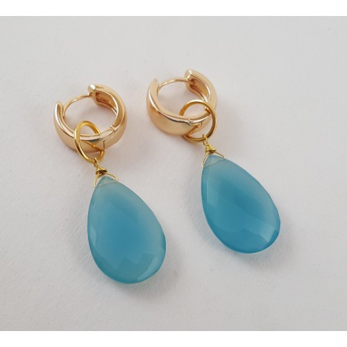Mooie Vergulde creolen met blauw Chalcedoon briolet.