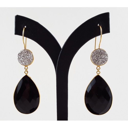 Mooie Vergulde (over Sterling zilver) oorbellen gezet met zwarte Onyx en druzy Titanium.