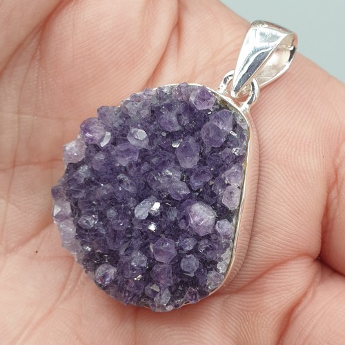 925 Sterling zilveren hanger met ruwe Amethist.