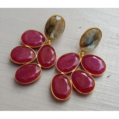 Mooie Vergulde (over Sterling zilver) oorbellen gezet met Robijn en Labradoriet.