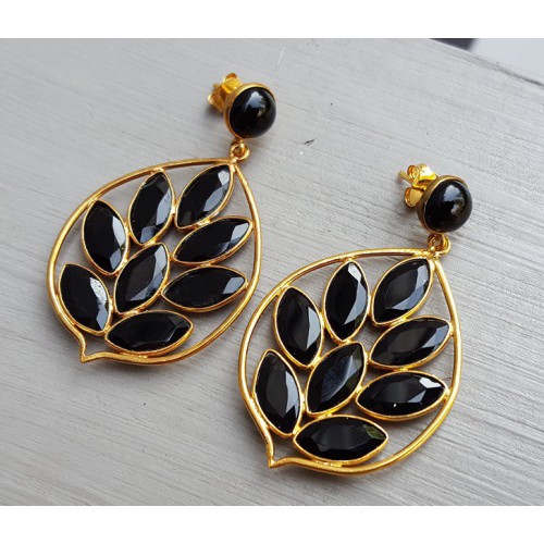 Mooie Vergulde (over Sterling zilver) oorbellen gezet met zwarte Onyx.