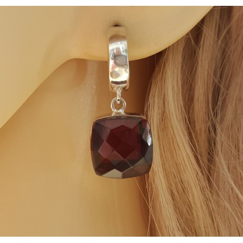 Mooie Sterling zilvereb creolen gezet met vierkante Granaat.