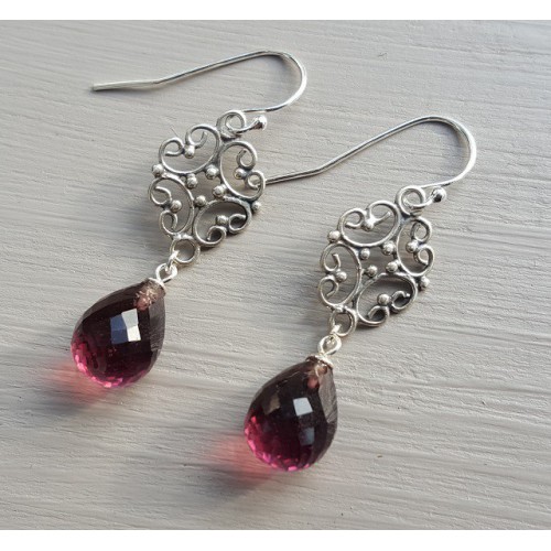 Mooie Sterling zilveren oorbellen met Amethist quartz briolet.