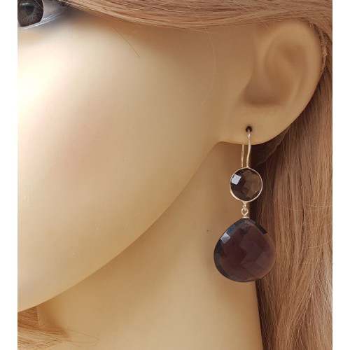 Mooie Sterling zilveren oorbellen met Smokey Topaas briolet.