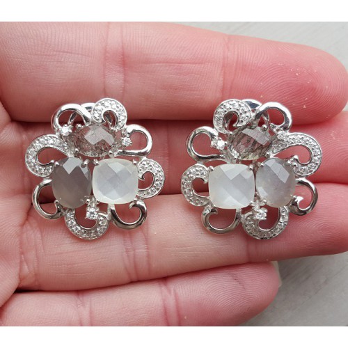 Mooie Sterling zilveren oorbellen gezet met Toermalijnkwarts, Maansteen en Zirkonia.