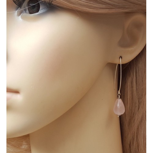 Mooie Sterling zilveren oorbellen met Rozenkwarts briolet.