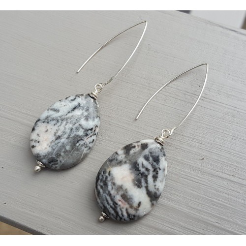 Mooie Sterling zilveren oorbellen met grote Jaspis briolet.