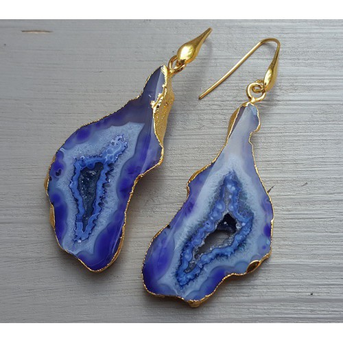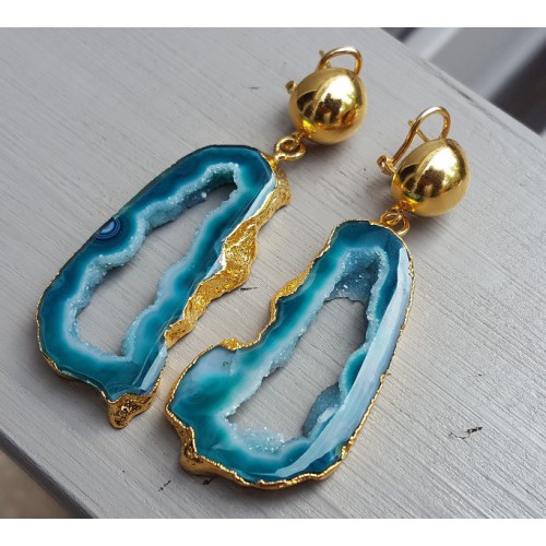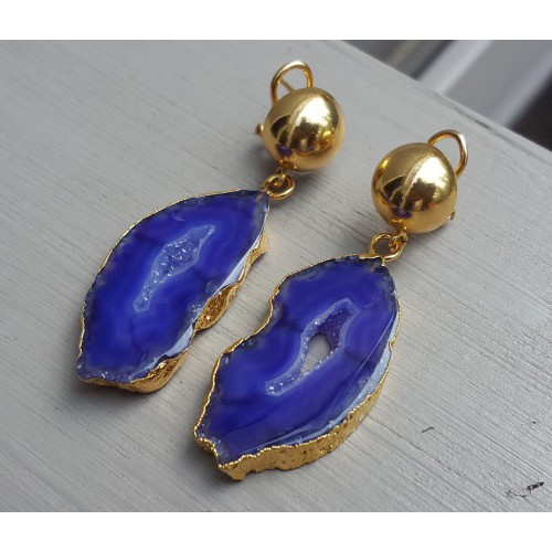 Mooie Vergulde (over Sterling zilver) oorbellen met druzy Agaat.