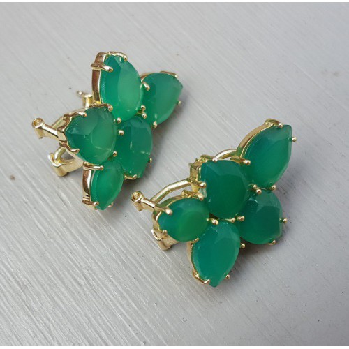 Mooie Vergulde (over Sterling zilver) oorbellen gezet met groene Onyx.