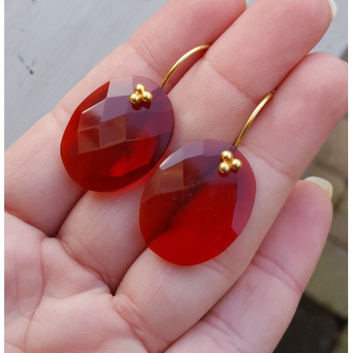 Deze oorbellen zijn gezet met Granaat rode quartz en hebben een totale lengte van 3.8 cm.