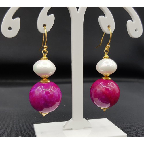 Mooie Vergulde (over Sterling zilver) oorbellen met grote ronde roze Sugiliet en schelp parel.