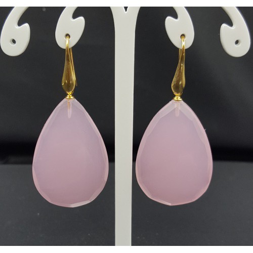 Mooie Vergulde (over Sterling zilver) oorbellen met grote roze Chalcedoon briolet.
