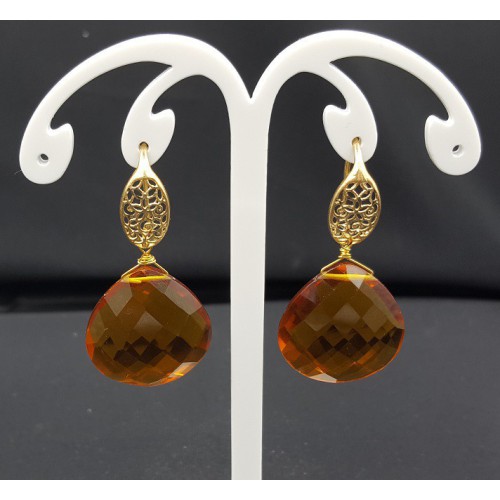 Mooie Vergulde (over Sterling zilver) oorbellen met Citrien quartz.