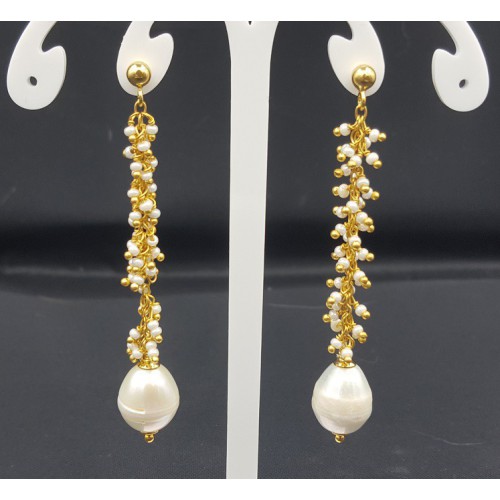 Mooie Vergulde oorbellen met Parel en Parel kraaltjes.
