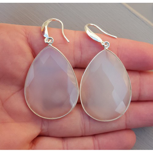 Mooie Sterling zilveren oorbellen gezet met wit Chalcedoon.