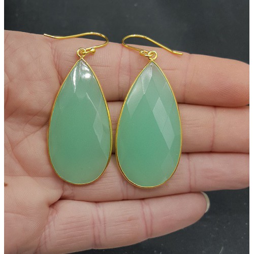 Mooie Vergulde (over Sterling zilver) oorbellen met aqua Chalcedoon.