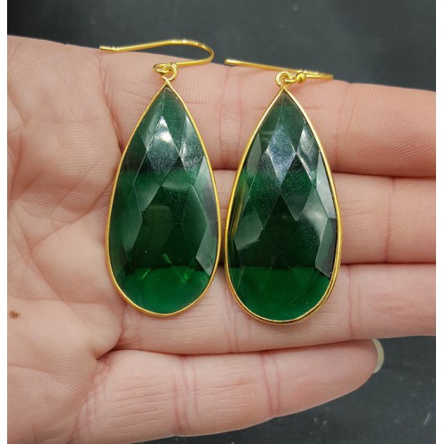 Mooie Vergulde (over Sterling zilver) oorbellen met Emerald quartz.
