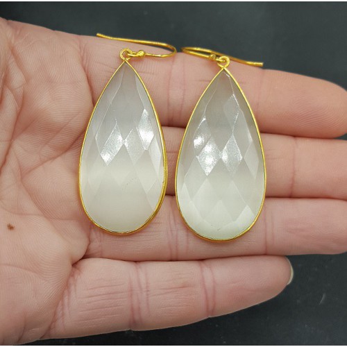 Mooie Vergulde (over Sterling zilver) oorbellen met witte Chalcedoon druppel.