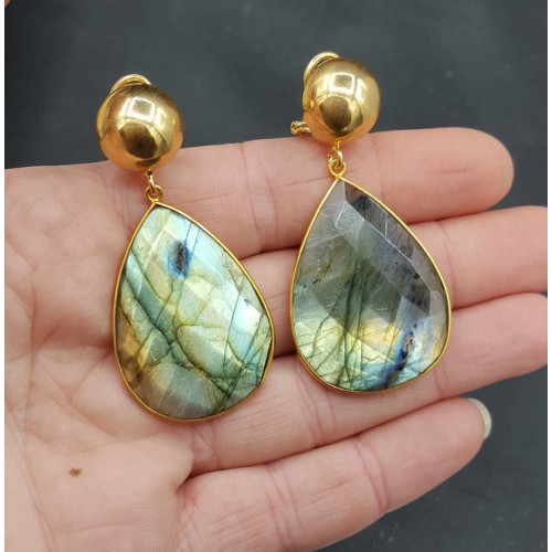 Mooie Vergulde (over Sterling zilver) oorbellen met Labradoriet.