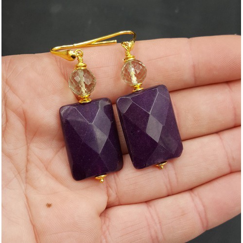 Mooie Vergulde (over Sterling zilver) oorbellen met groene Amethist en paarse Jade.