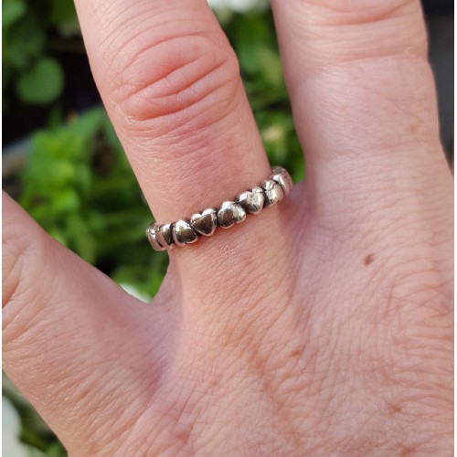 Sterling zilveren ring met hartjes.