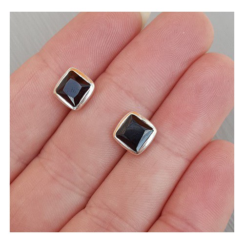 Zilveren oorknoppen gezet met vierkante facet Smokey Topaas